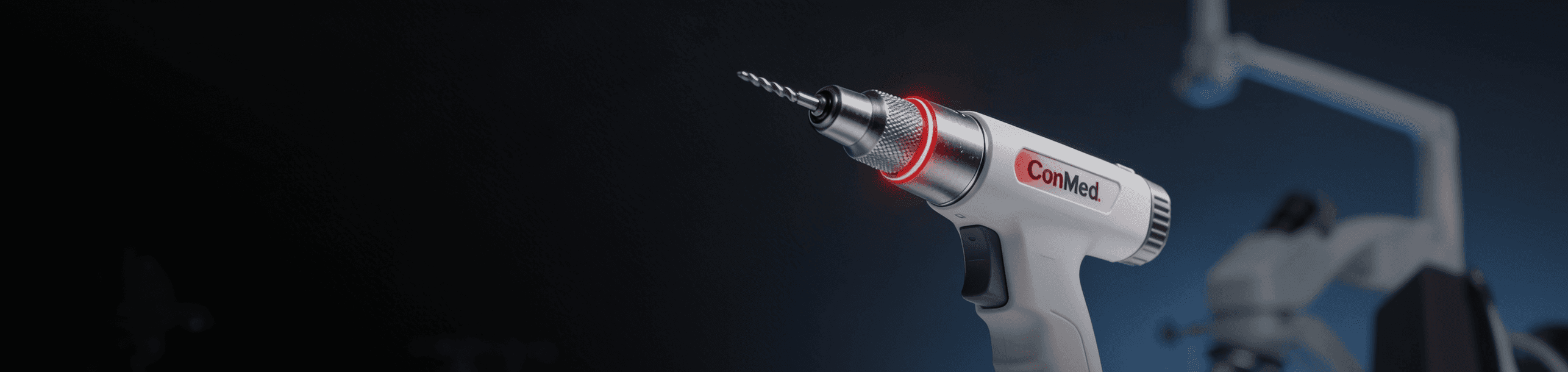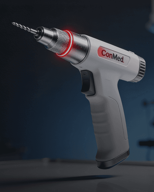 O Hall® Titan® 2-Trigger Modular Drill da ConMed é utilizado para perfuração óssea em procedimentos ortopédicos e cirúrgicos.